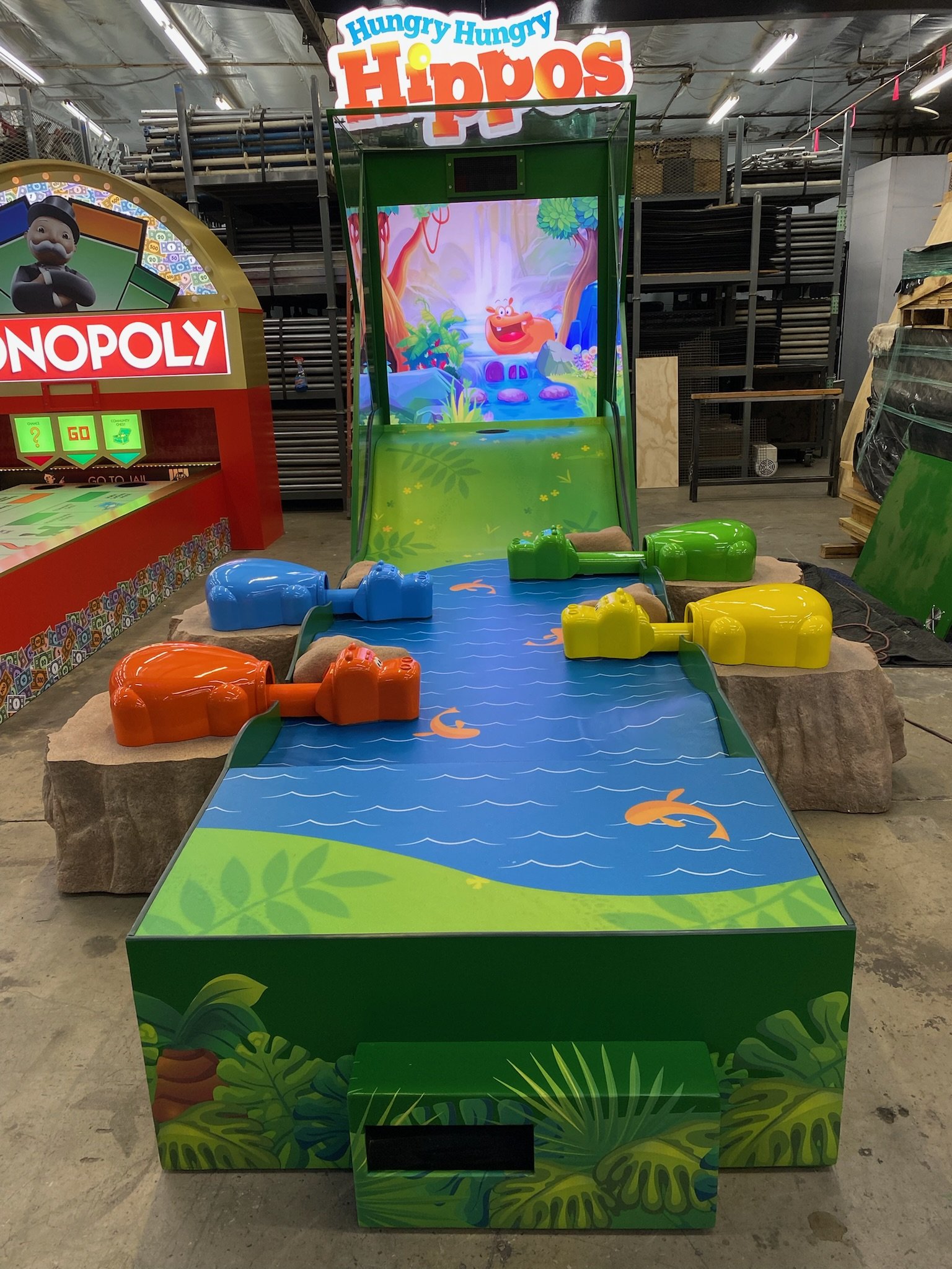 we created a 9-hole “Skee Golf” (skee ball / mini golf) course based on famous hasbro properties for a family entertainment center in new jersey. the design, fabrication, programing, graphics, rfid integration, and hub communication were executed by Arête. If you’re ever near the meadowlands, stop by!
